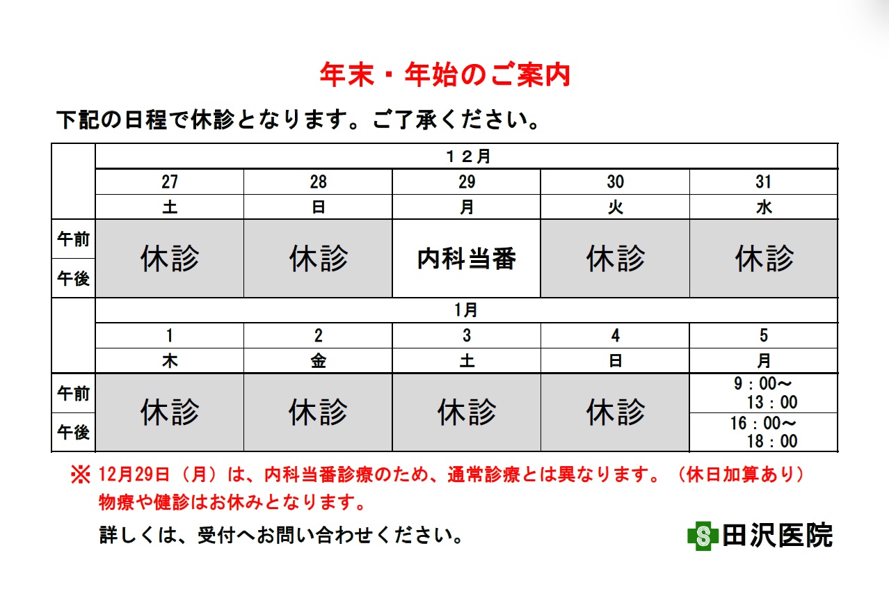 年末年始のご案内